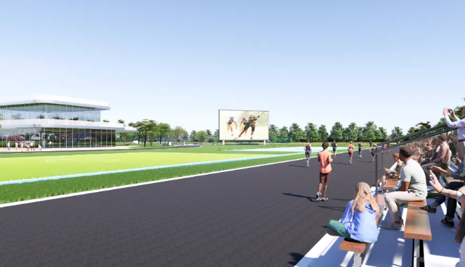 其中,速度轮滑赛道环线总长467.9米,直线段总长163.75米,宽度8.3米,世运会比赛期间将设活动席位约620座。