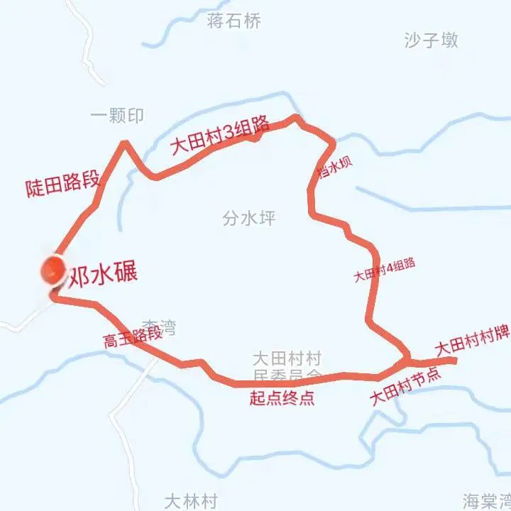 串联大田村会议室、邓水碾、一颗印、大田村节点等标志性地点