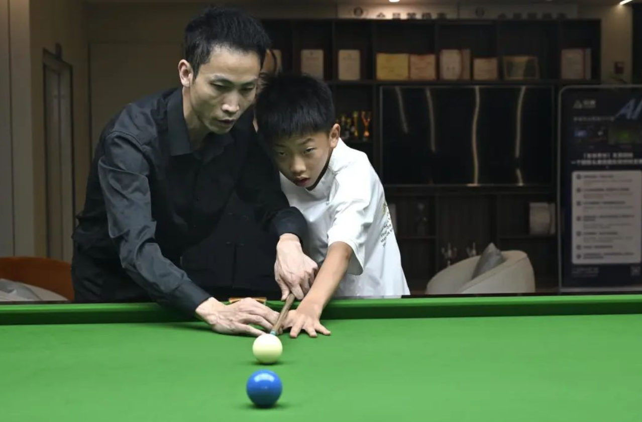 活动现场,8岁“小球手”成唐遇携带球杆与父亲成沁同场学习,首次接触斯诺克的他在教练指导下迅速掌握手架、握杆等基础动作。“斯诺克球台更大,瞄准难度比中式八球高很多。”成沁在旁感慨道。蔡伟教练以赵心童、白雨露世锦赛夺冠为例激励市民:“中国斯诺克正在崛起,成都爱好者的热情让这项运动更具活力。”