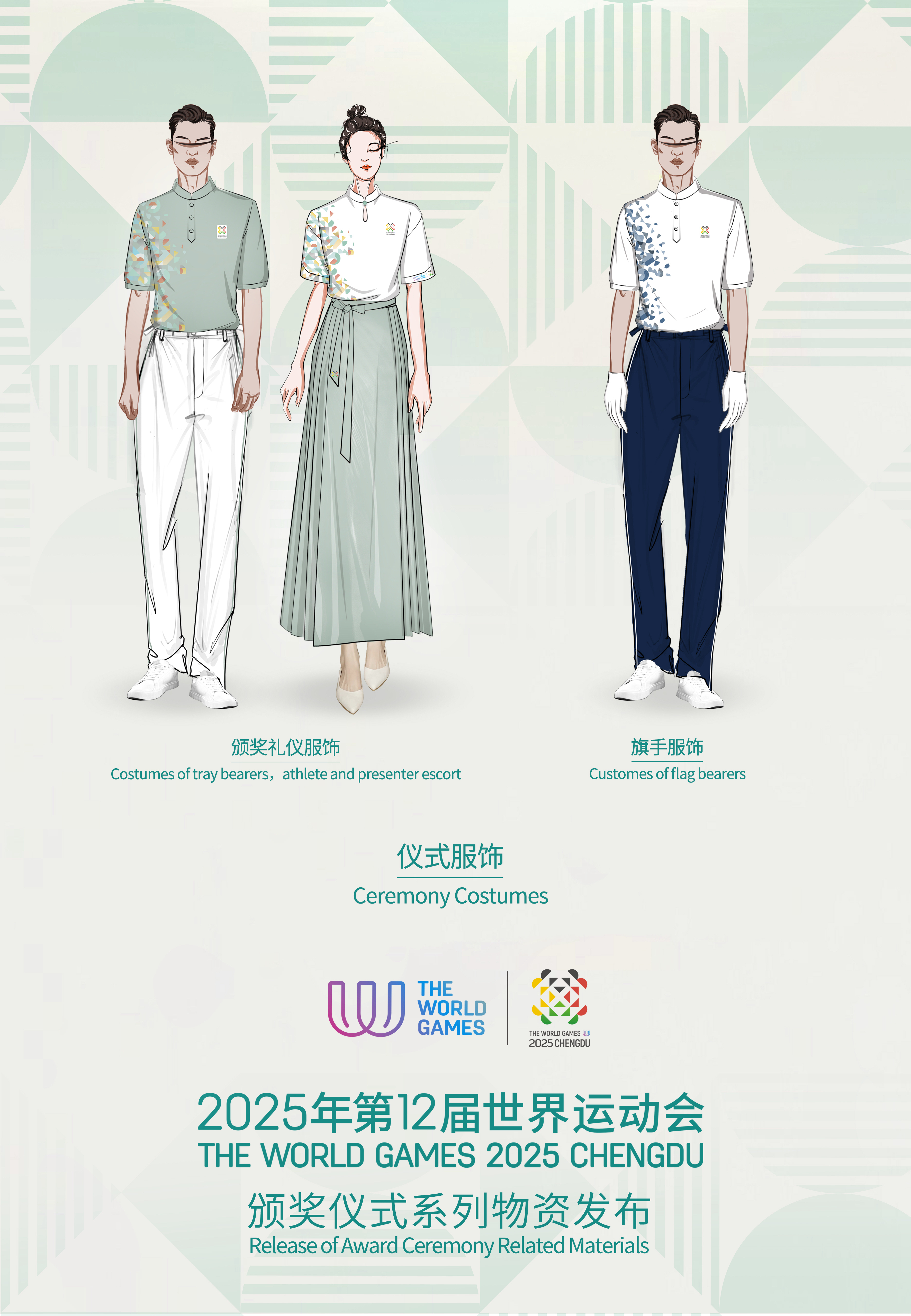 以新中式美学破题!在今天公布的成都世运会仪式服饰设计中,传统的气韵与现代的高雅巧妙融合。