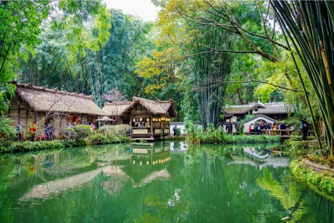 杜甫草堂博物馆是唐代大诗人杜甫流寓成都时的故居。园内古木参天,溪流环绕,亭台楼阁错落有致,充满了诗意氛围。游客可来此参观杜甫曾经居住过的茅屋,了解他在成都的生活经历,欣赏他的诗歌作品。