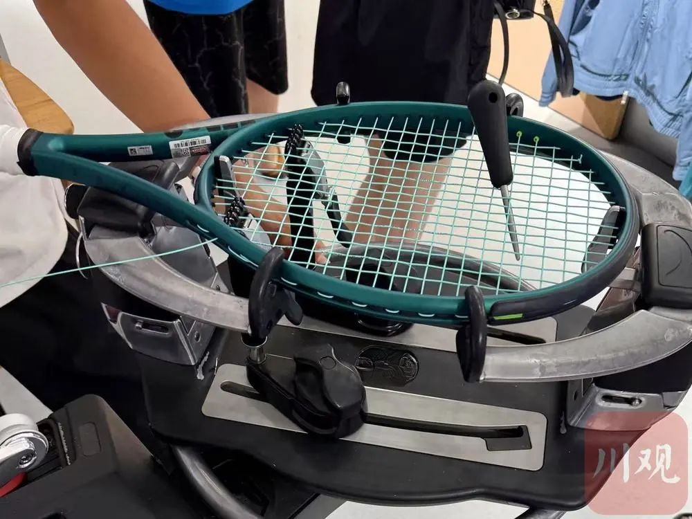 位于成都西大街和二环路南三段的网球装备专卖店人气颇高。以西大街某店为例,据了解在半小时内,店内5台球拍穿线机满负荷运转,近20位消费者在选购网球拍。