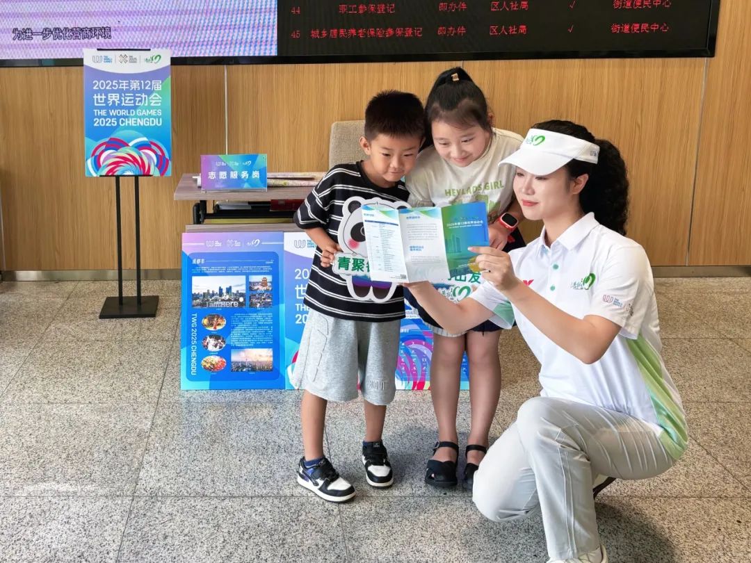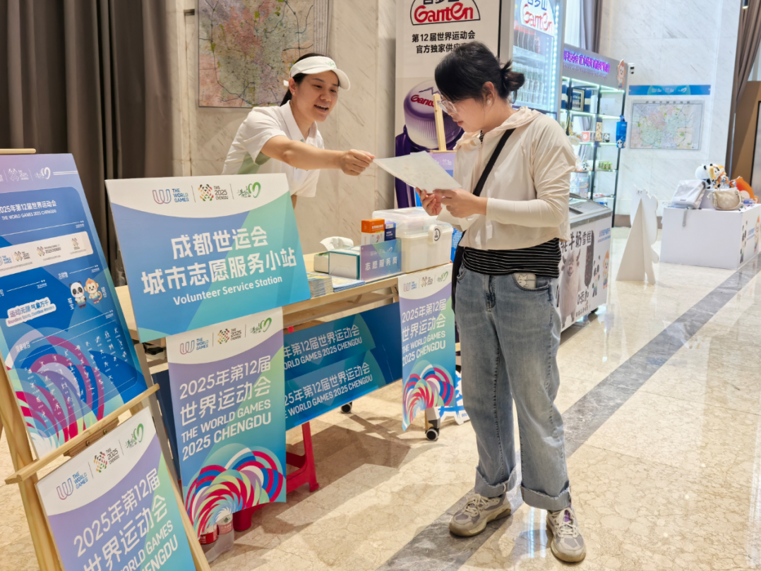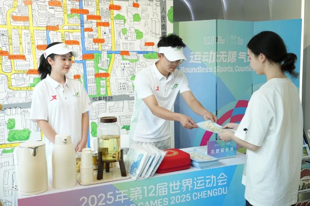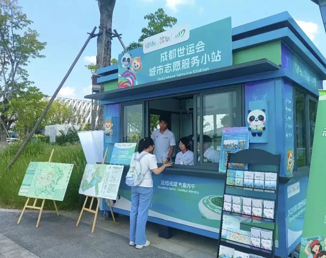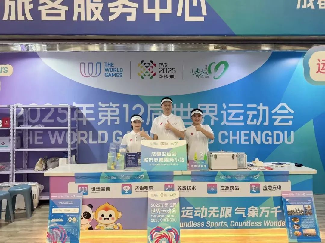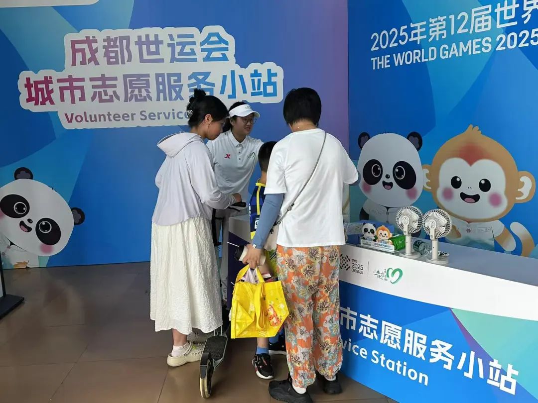 在新津区城市志愿服务小站,“小青椒”们正积极向往来市民和游客派发精心准备的世运宣传手册,耐心介绍赛事信息、城市文化及服务内容,助力提升公众对成都世运会的知晓度和参与感。