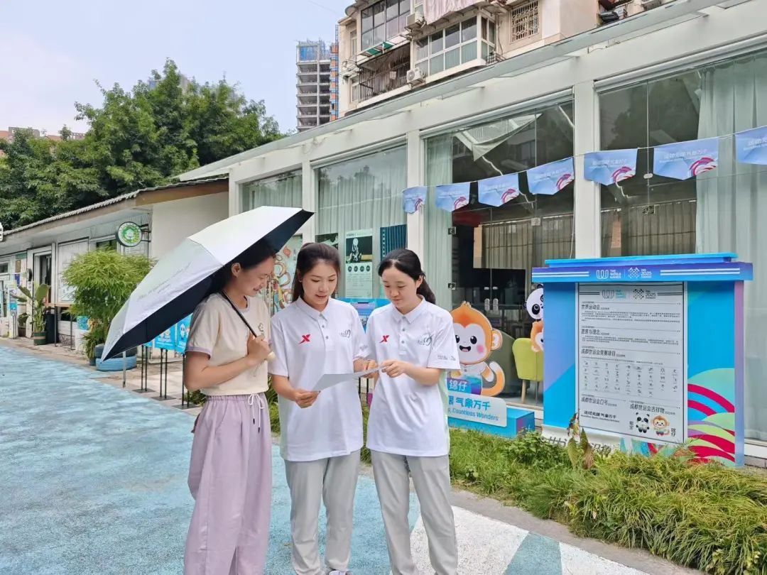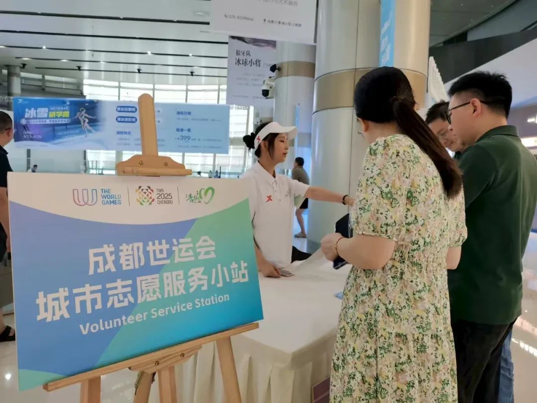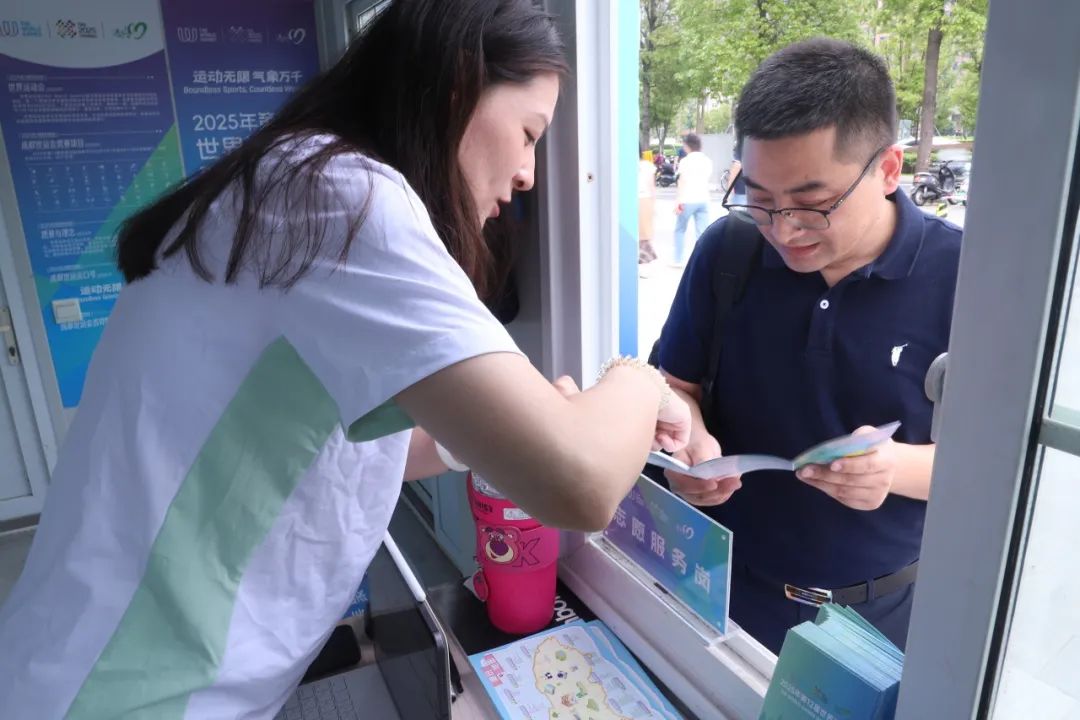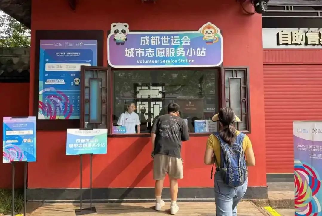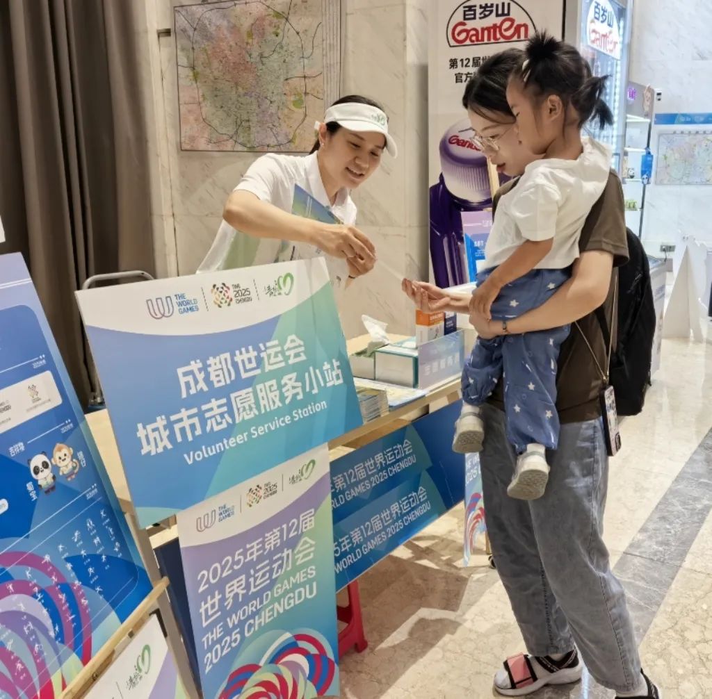 在新津区城市志愿服务小站,“小青椒”们正积极向往来市民和游客派发精心准备的世运宣传手册,耐心介绍赛事信息、城市文化及服务内容,助力提升公众对成都世运会的知晓度和参与感。