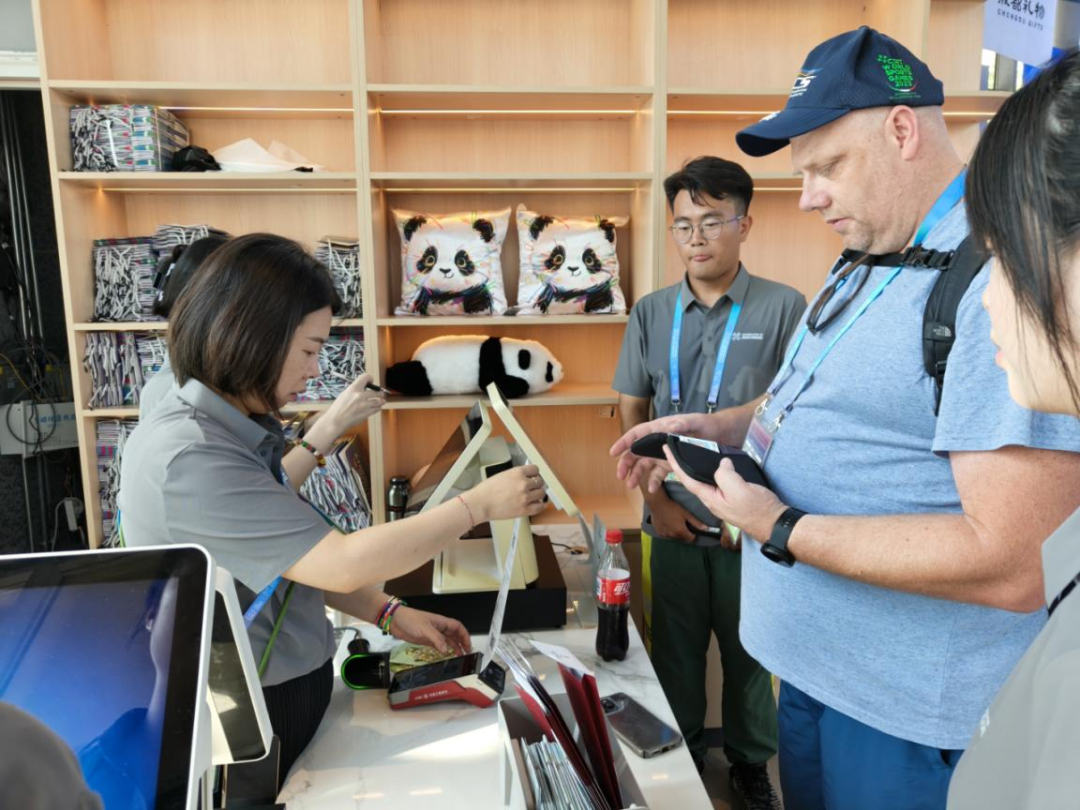 世运村"成都礼物"文创商店内首笔外卡支付成功