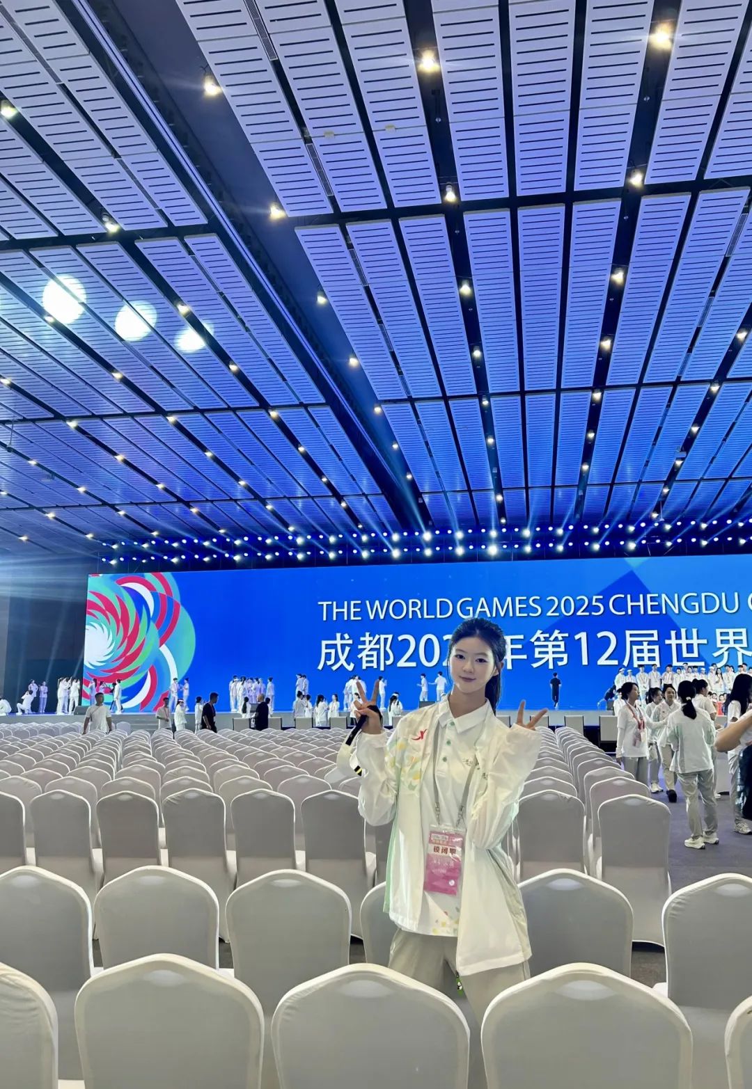 作为成都世运会开幕式仪式标兵,饱满的热情和严谨的态度,让我专注认真地完成每一个舞蹈动作,以热情活泼、活力四射的状态迎接八方来客。相信这场体育盛会因我们的艺术呈现更加璀璨,向世界展现青春风采与多元文化交融的魅力。