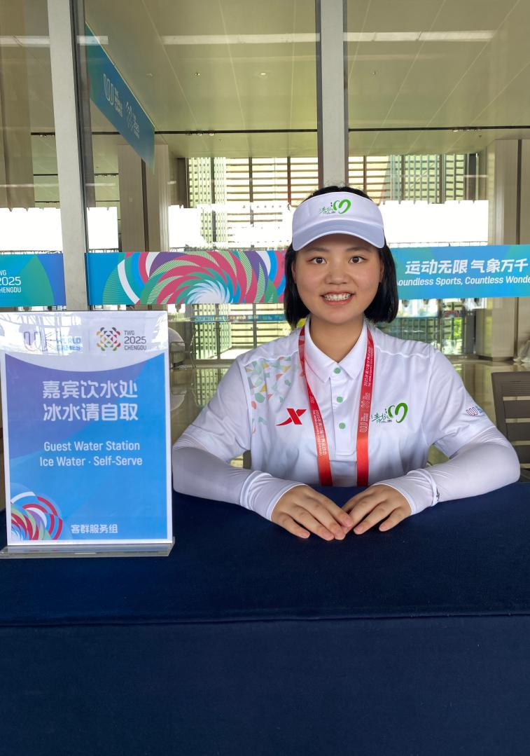 作为开幕式观众类志愿者,开幕式演练时一系列暖心的服务,让我获得嘉宾们的接连称赞,也让我感受到了志愿服务的价值。相信我的热情服务,将会成为嘉宾对于成都世运会的独特记忆,让世界认识中国青年风采。