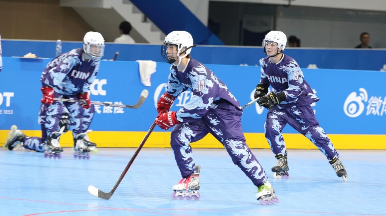 正午十二时,中国单排轮滑球队的健儿们身着印有腾龙纹样的服装,脚踏专业轮滑鞋、手持曲棍,在赛场里快速移动。敏捷矫健的身影划出一道道优美的弧线,棍与球碰撞出的清脆响声,为这个激情澎湃的训练日奏响了开篇乐章。