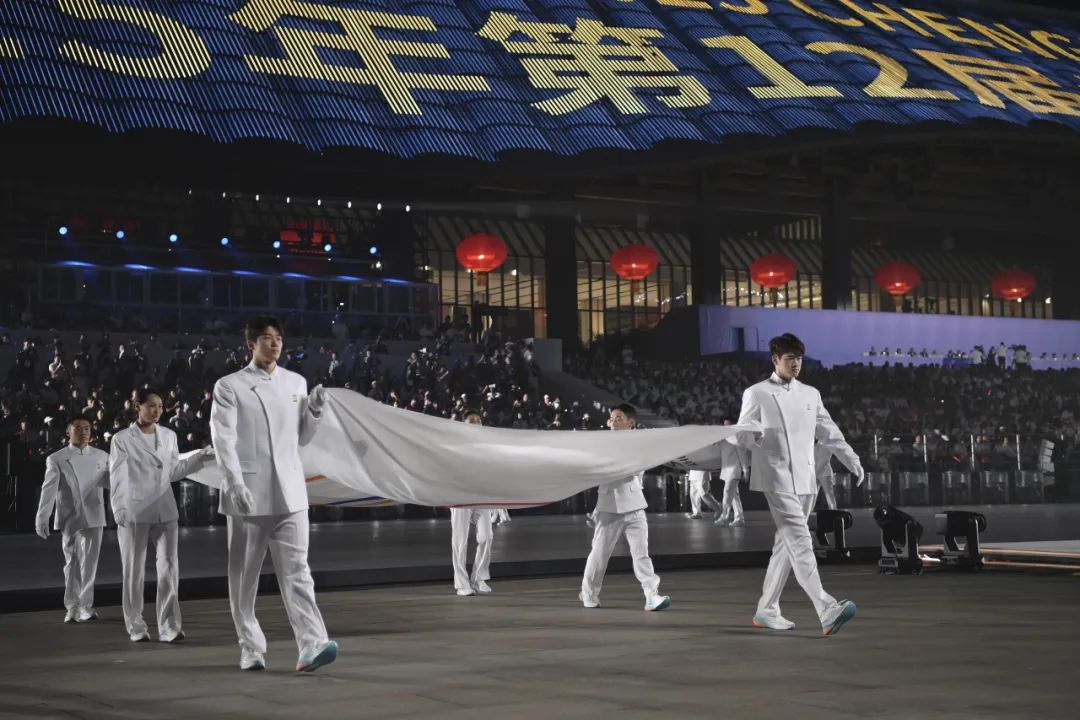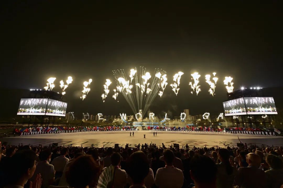 随后,在“天府之檐”下,文体表演《锦绣之韵》、主题曲表演《友爱之声》接续上演,将运动项目与中华文化、巴蜀元素有机结合,展示出“运动无限 气象万千”的主题。在万众期待下,世运圣火在湖中点燃,以水火相生的科技创新美学,向全世界传递梦想之光。