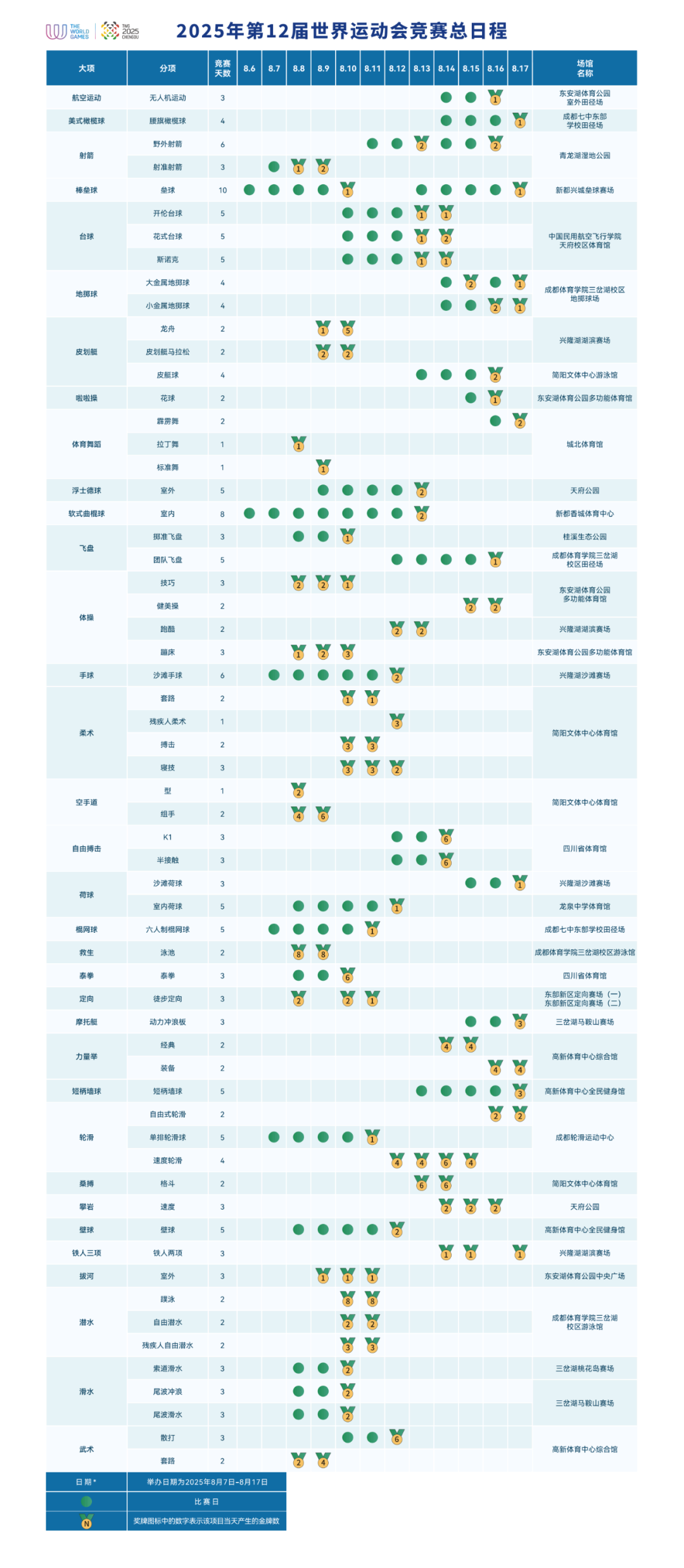 成都世运会潜水项目设自由潜水、残疾人自由潜水、蹼泳三个分项,前两项是首次成为世运会正式比赛项目。残疾人自由潜水还是本届世运会首次增设的2个残疾人专项之一。自由潜水要求运动员用一口气在泳池中折返,游距最远者获胜。