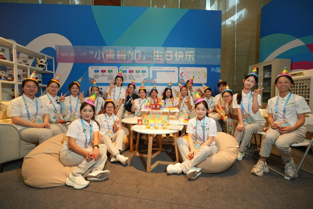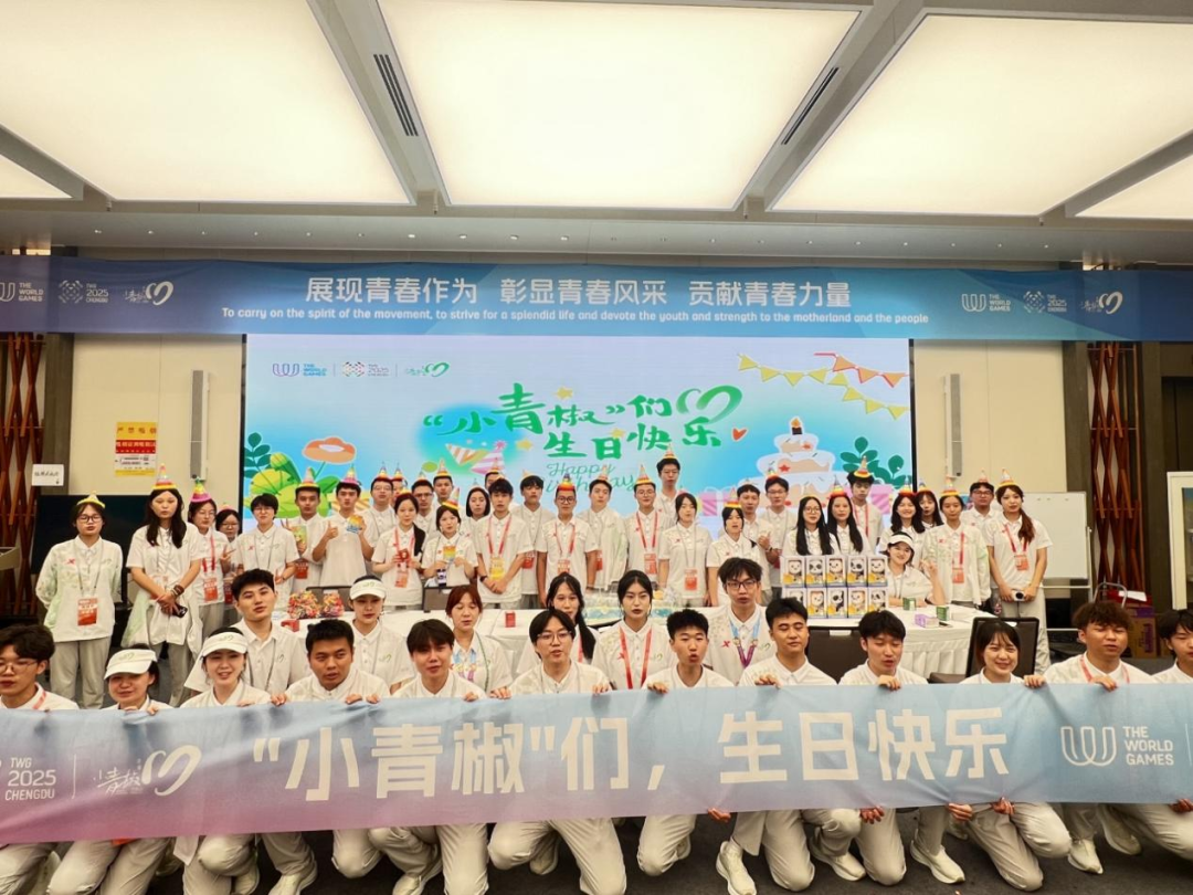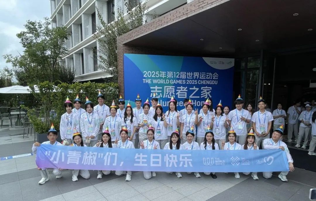 丰富多样的活动为 “小青椒” 们注入满满能量。集体生日会传递着集体的温暖,定制蛋糕承载着诚挚祝福;世运会知识有奖竞答氛围热烈,既增进了志愿者对赛事的了解,又激发了团队活力;青春音乐会奏响青春旋律,为大家舒缓压力、放松心情。此外,“能量补给包”及时送达,各类零食饮料为志愿者补充体力;“志愿者之家”凉爽舒适的环境有效缓解了志愿者们服务期间的疲惫,让大家能以更饱满的状态投入工作。