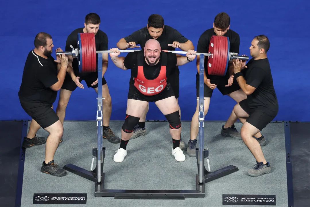 SAMKHARADZE Temur在蹲举比赛中。(中国日报记者 魏晓昊 摄)