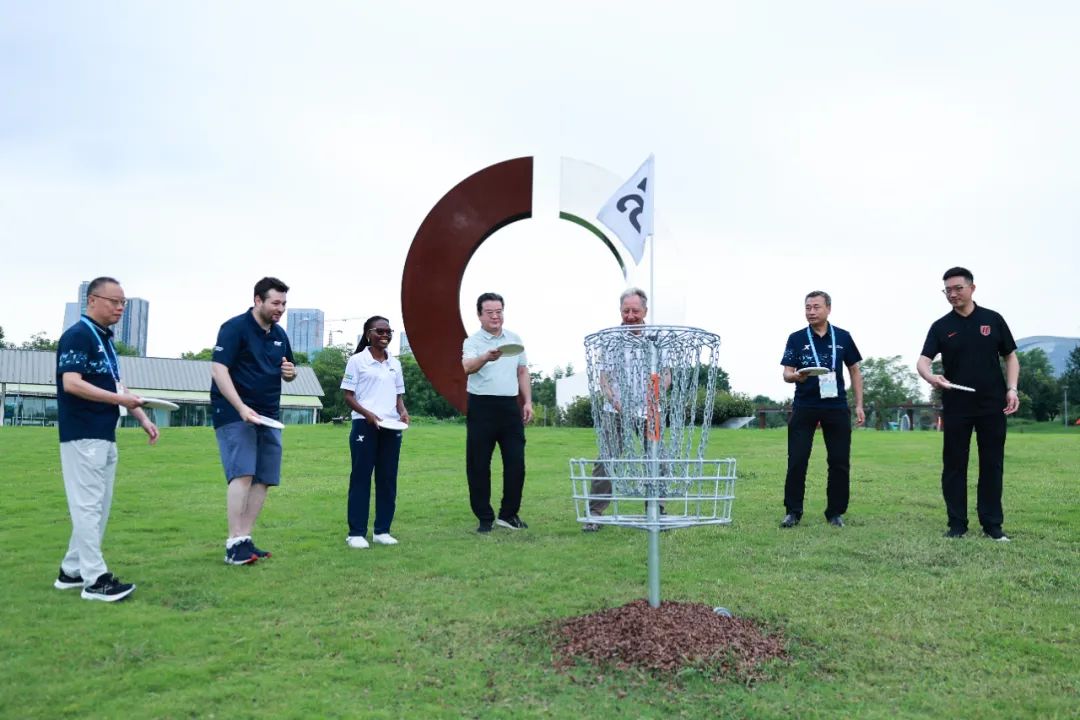 世界飞盘联合会主席罗伯特·劳赫、国家体育总局社会体育指导中心主任刘君柱、市体育局主要负责同志,以及成都高新区管委会、成都兴城集团有关负责同志等嘉宾出席,共同见证这一时刻。
