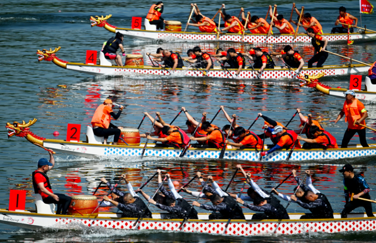 头一回,龙舟与皮划艇同湖竞渡
